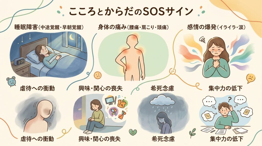 特に「眠れない」「食欲がない」「消えてしまいたい」という症状があるなら、専門医の助けが必要です。