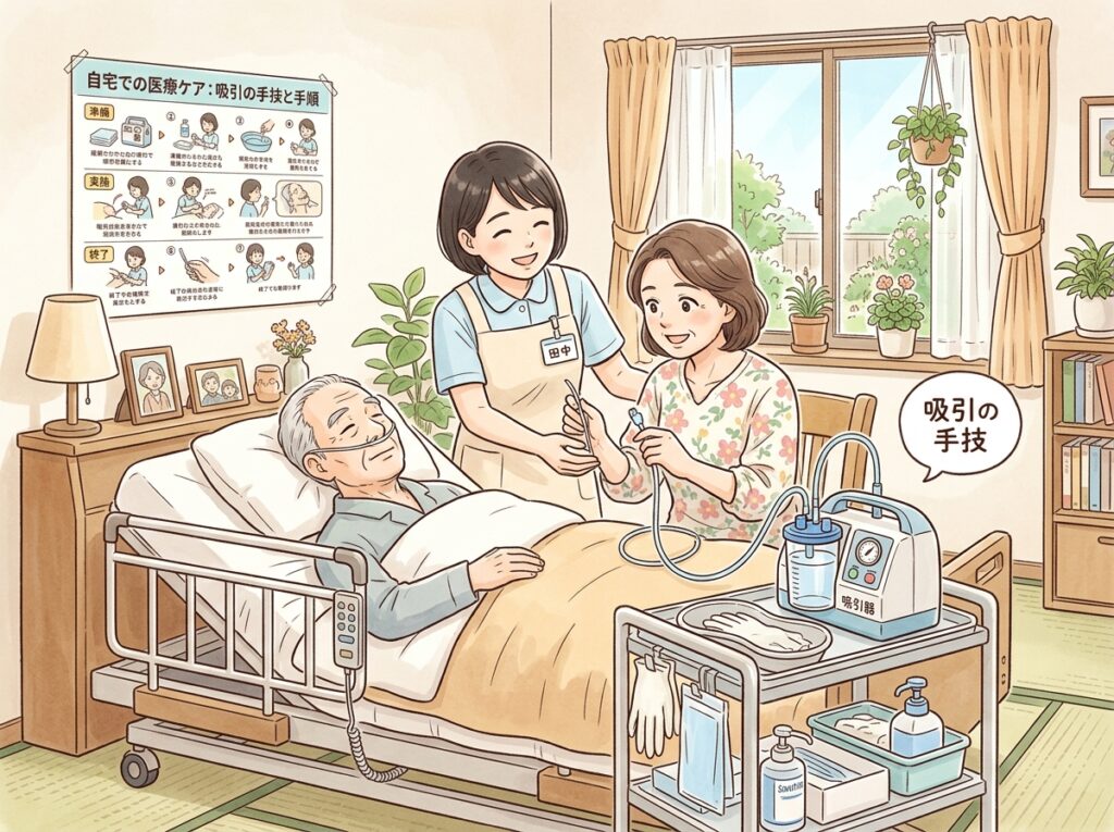 - 必須習得:痰の吸引手技(家族が行う場合は研修修了が必要)