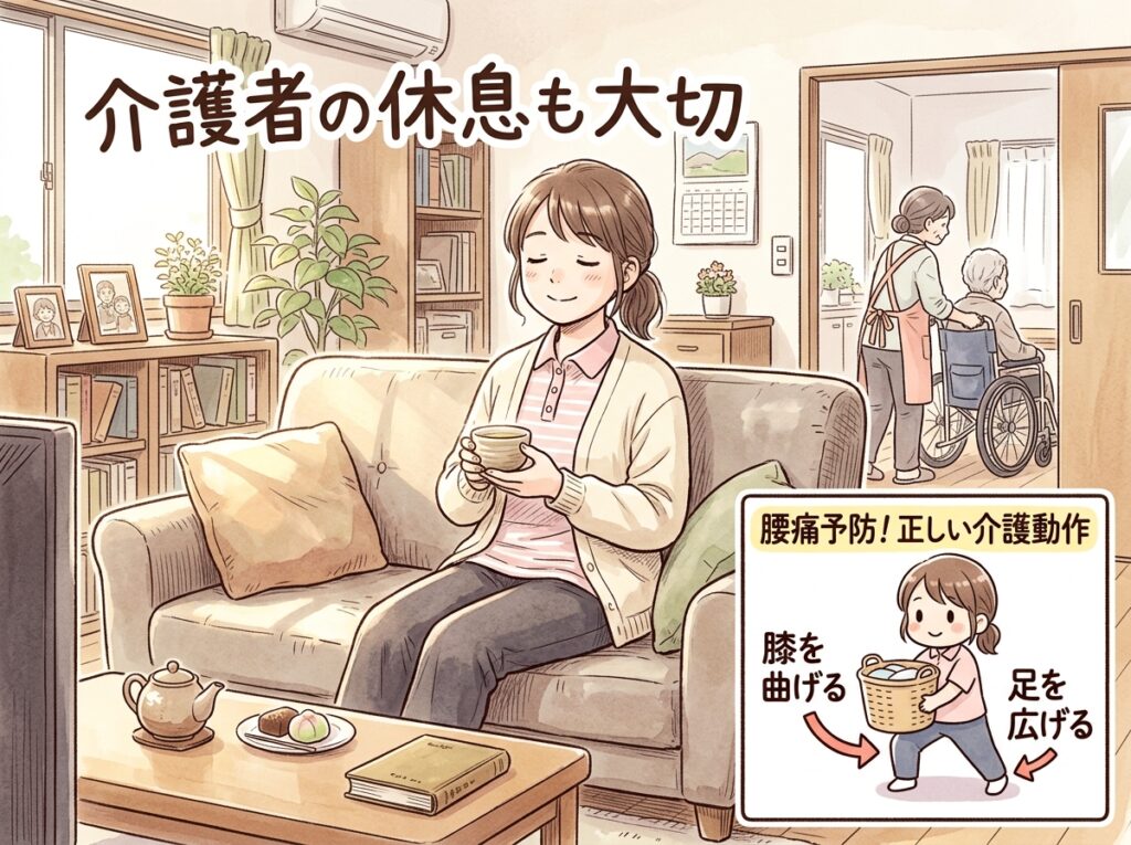 □ チェック⑫:介護者の腰痛予防と休息計画(訪問ヘルパー・訪問リハビリの確保)